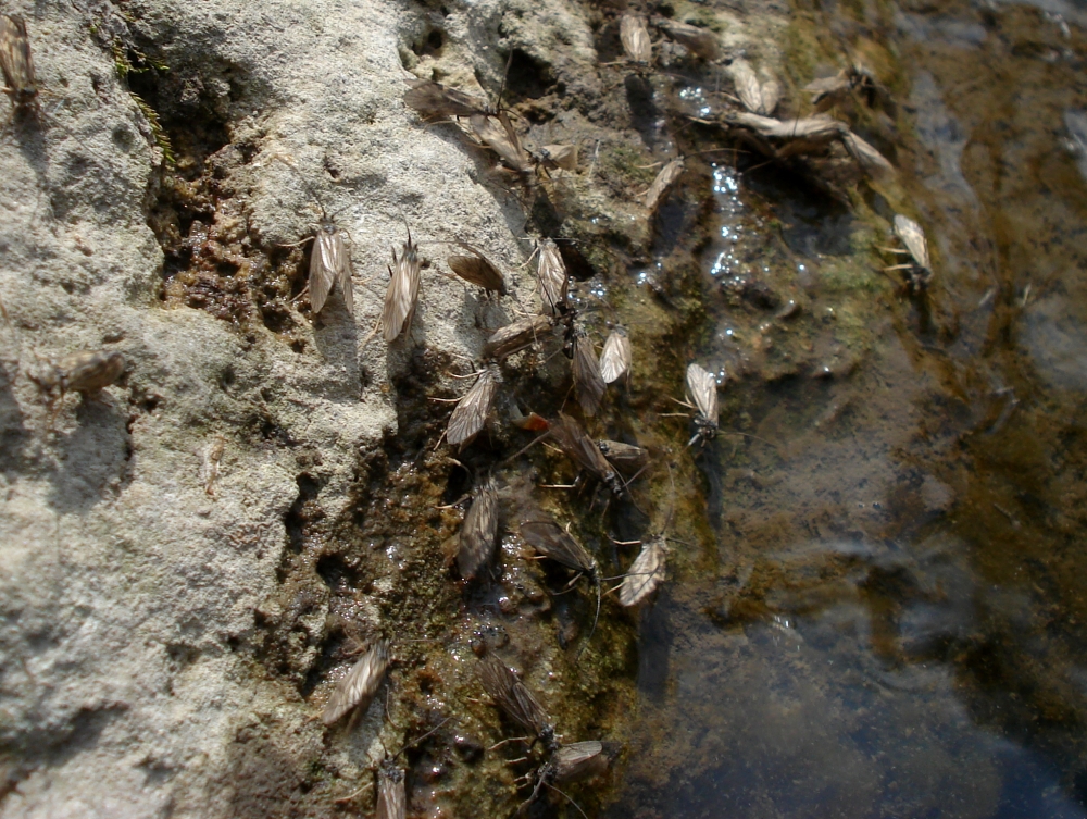 The larvae enter a pupa stage for weeks or months after they mature but before they emerge from the water. Once the water cools in the fall, the mature Caddisfly emerges from the water, shedding their intricate case, to look for a mate. Their life span above the water is anywhere from 1 to 2 weeks and up to 2 months. Their sole purpose is to mate and lay eggs before their life cycle ends. Eggs hatch in as little as 3 weeks and the cycle begins again. Most lifecycles are completed in a single year.